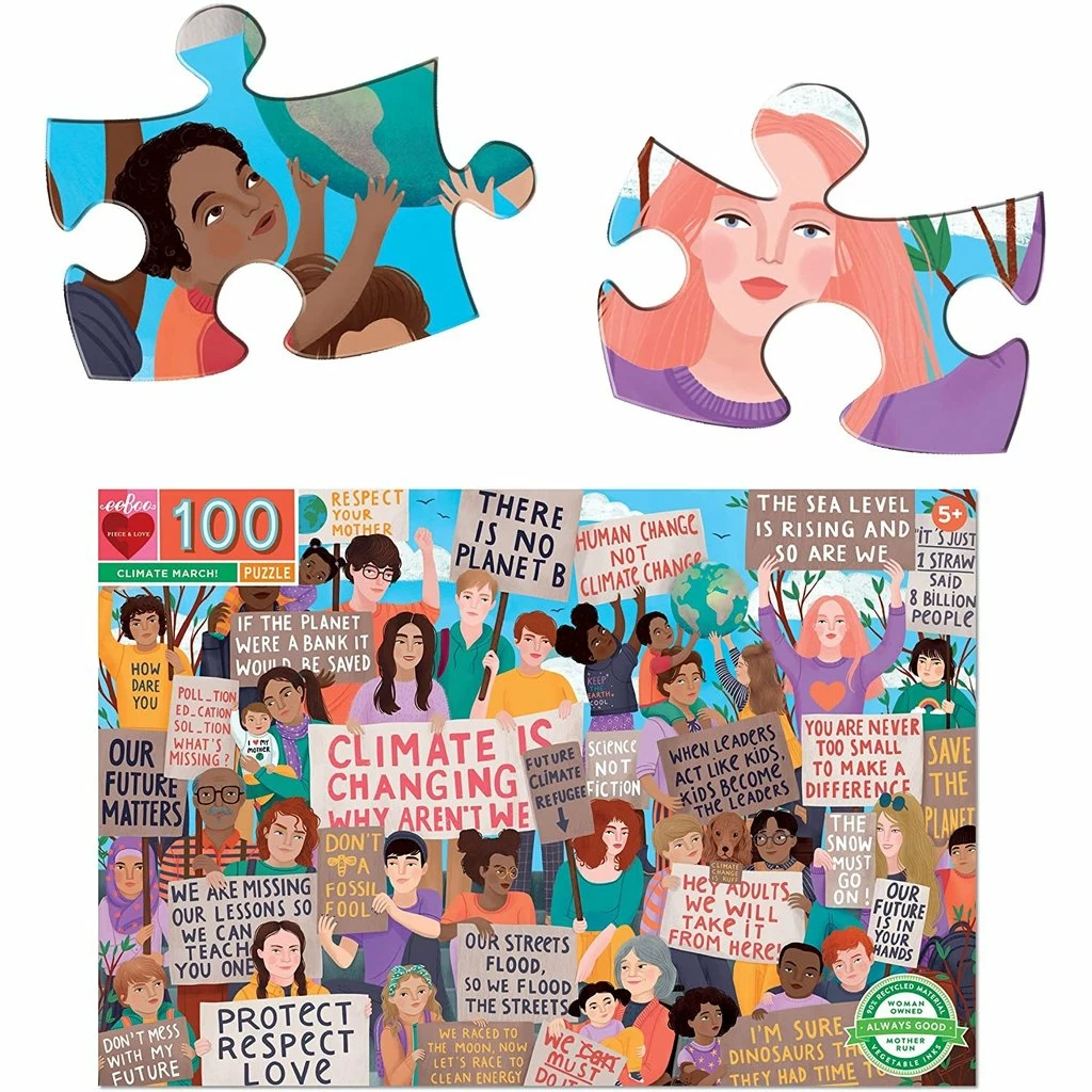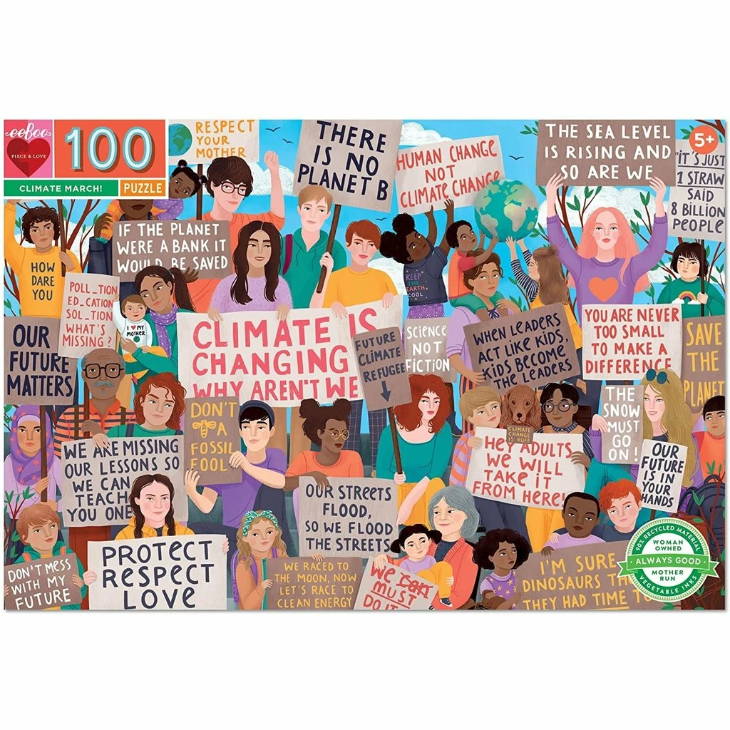 - An homage to the climate marches that have erupted around the world as a new generation of global citizens find its voice. Piece count: 100; Dimensions: 27 x 18 inches; Box size: 13 x 9 x 2 inches