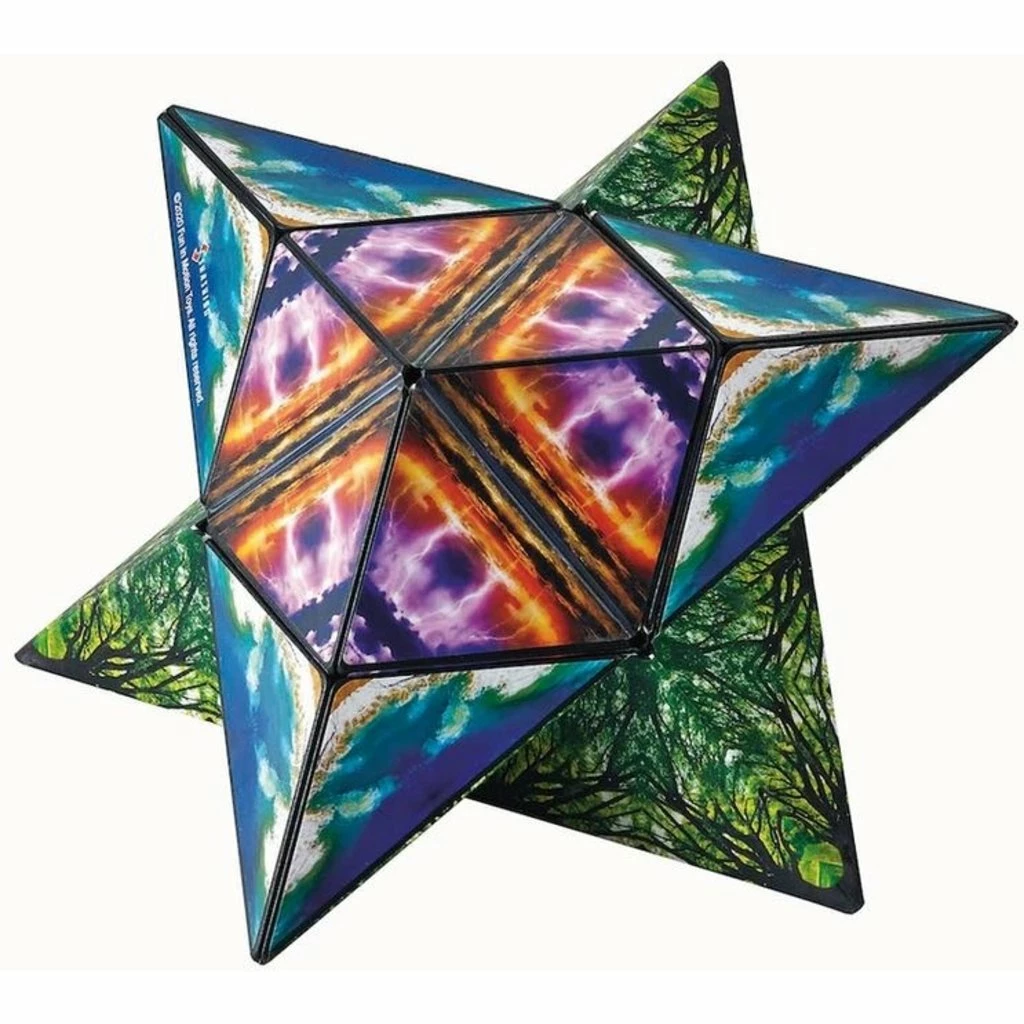 Unlock the geometric secrets of Shashiboยฎ! This mysterious magnetic puzzle box is powered by 36 rare earth magnets and transforms into over 70 shapes! It may look like an ordinary box on the outside, but each Shashibo has a kaleidoscope effect once you open it and begin to connect the magnets to create geometric shapes. Collect and combine several to build even larger shapes, sculptures and structures. Gently fidget, twist and let the magnets guide you. Can you master the shape shifter? What will you create?