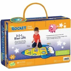 3-2-1… Blast off with a Rocket Puzzle! This extra-large, foil-accented floor puzzle has thick and sturdy pieces that curious preschoolers will love to assemble again and again. The finished puzzle measures approximately 2 feet by 3 feet, and uniquely-shaped pieces include a triangle, circle, square, rectangle and two ovals. Store all your puzzle pieces in the included box with a corded handle for easy carrying.